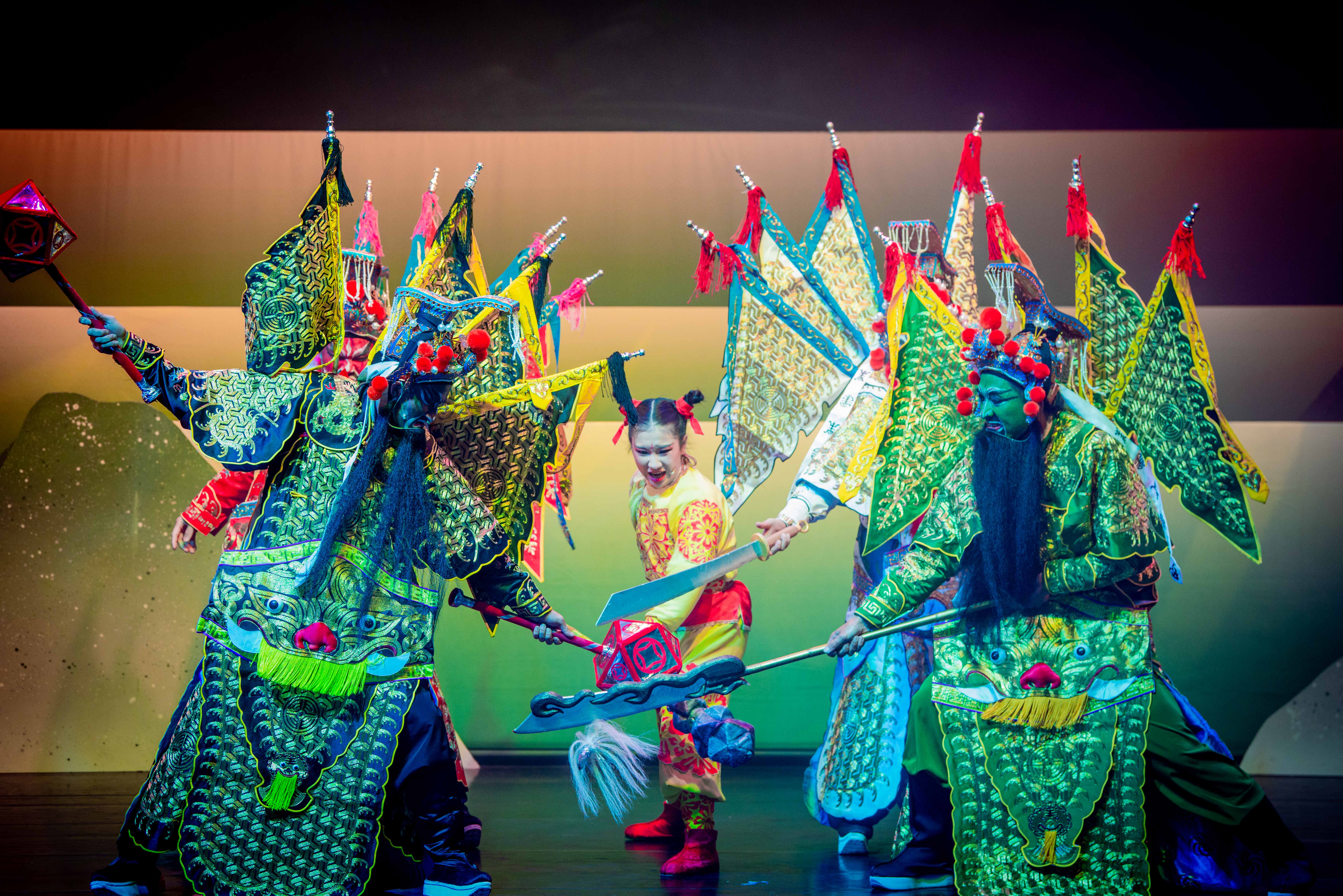 A hagyományos kesztyűsbábokon és a színészeken kívül olyan elemeket építettünk be a darabba, mint a tradicionális opera kungfu elemei, a tajvani Pa Csia Csiang (az Alvilág nyolc tábornoka) karaktereit kifejező mozdulatok, vagy a pejkuan zenei stílus. A digitális technológia és a modern színházra jellemző kreatív elemek segítségével az előadás 3D-s animációk és fényeffektek kíséretében a szemünk előtt válik élő festménnyé. A valóság és képzelet közötti határ elmosódik, a közönség egy szempillantás alatt a világ másik felén érezheti magát.